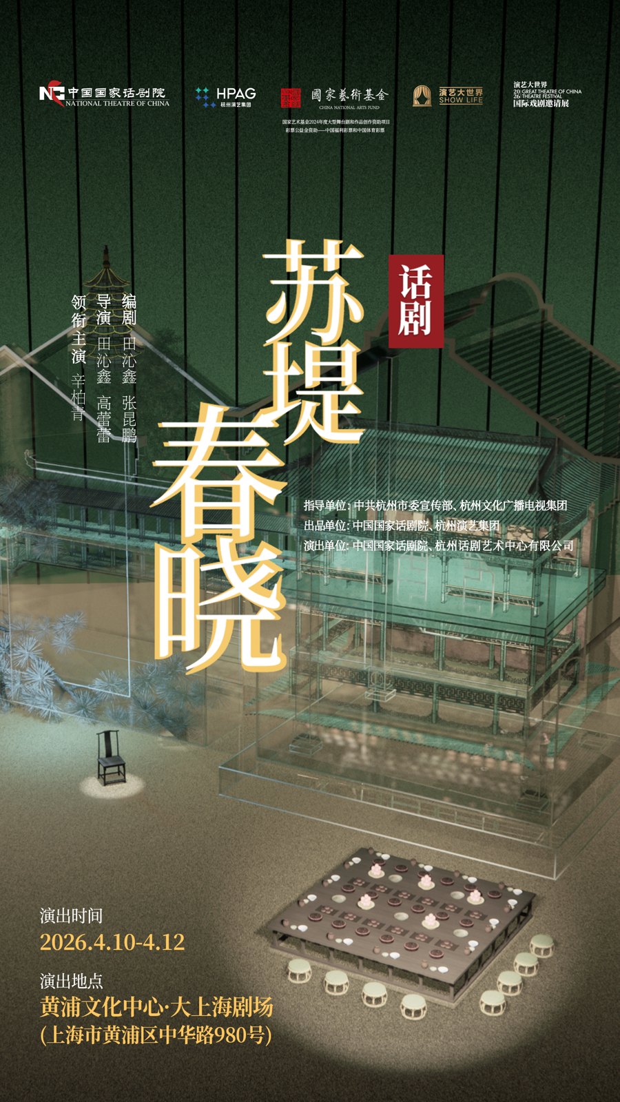 春风又绿江南岸,国话好戏如约来。3月3日,备受瞩目的2026国话·上海演出季拉开售票帷幕。中国国家话剧院院长田沁鑫携两部重磅力作率先官宣——由辛柏青领衔主演的话剧《苏堤春晓》与李光洁、关晓彤主演的文献话剧《抗战中的文艺》将于4月登陆黄浦文化中心·大上海剧场。