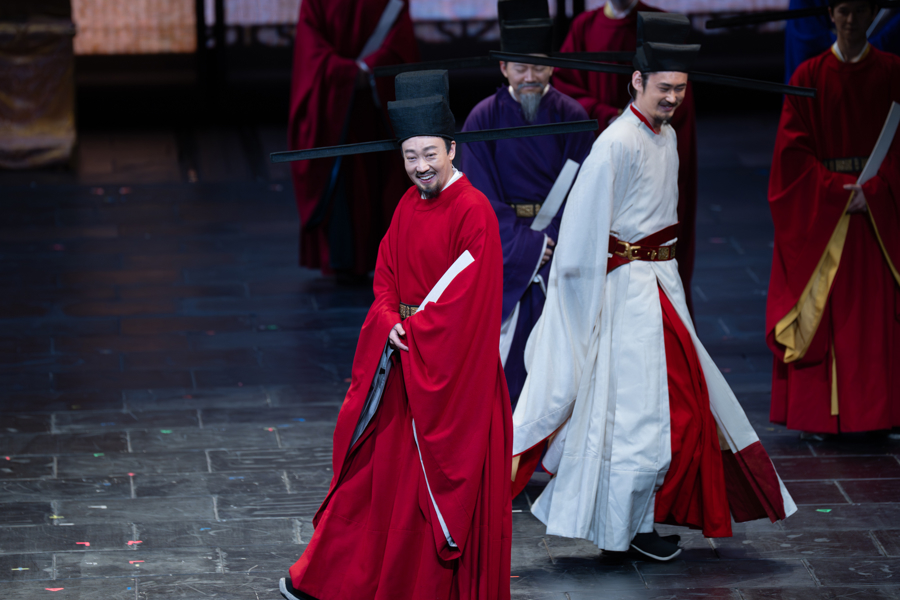 剧目跳出传统文人传记的创作路径,以“大宋公务员”的全新视角,采用非线性叙事结构,串联苏东坡两次赴任杭州的人生际遇。围绕出世与入世的人生抉择,铺展其与家人、同僚、恩师、百姓和杭州城之间的深层羁绊,亦庄亦谐地勾勒出这位千古名士的一生。